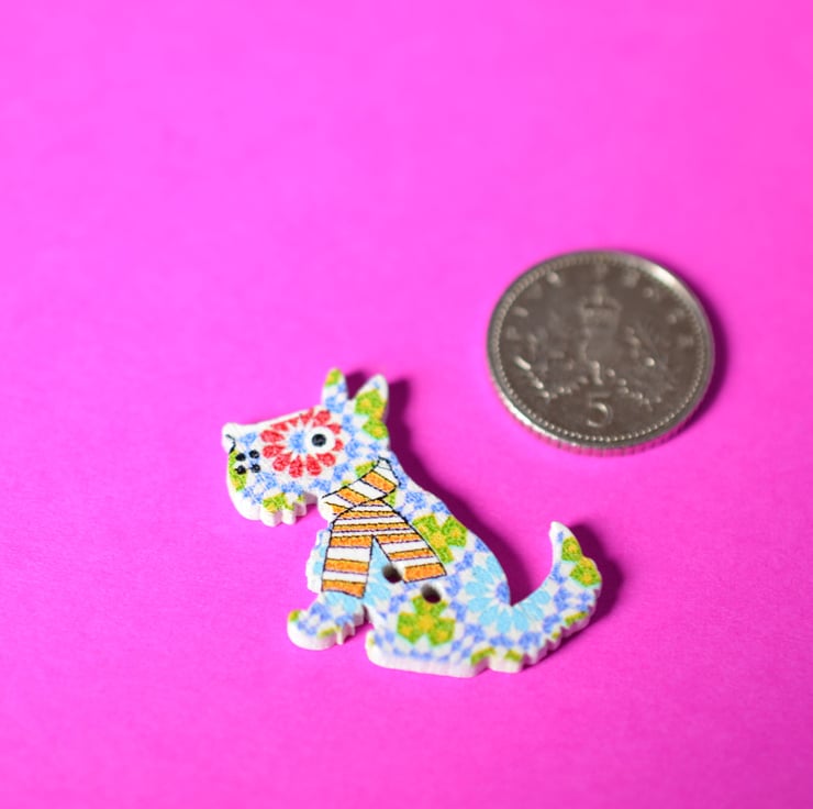 Wooden Dog Buttons Blue,Green & White Flowers 6pk 30x20mm Puppy (DG18)