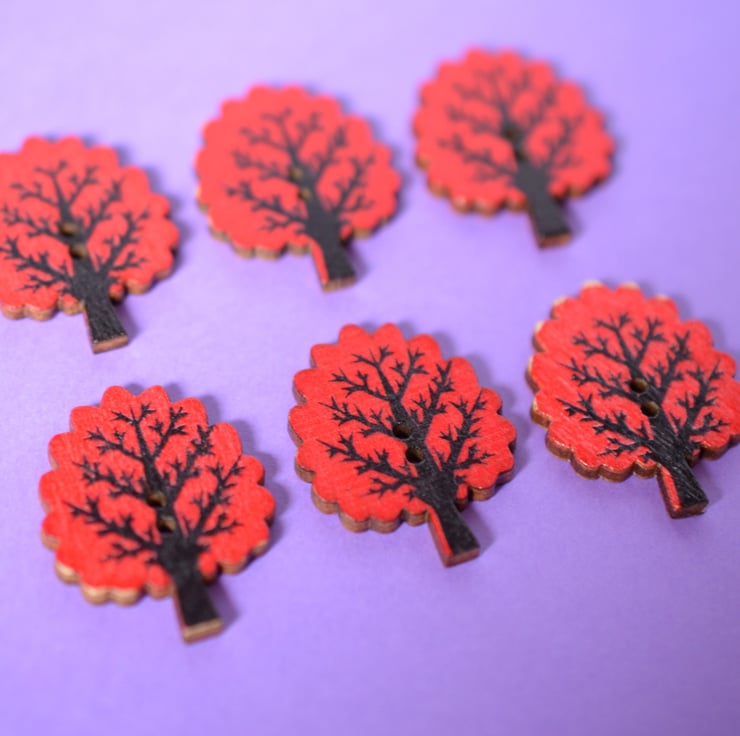 Wooden Tree Buttons Red 6pk 32x24mm Woodland (T3)