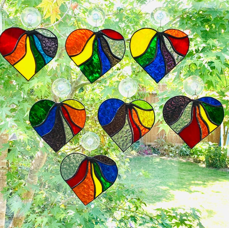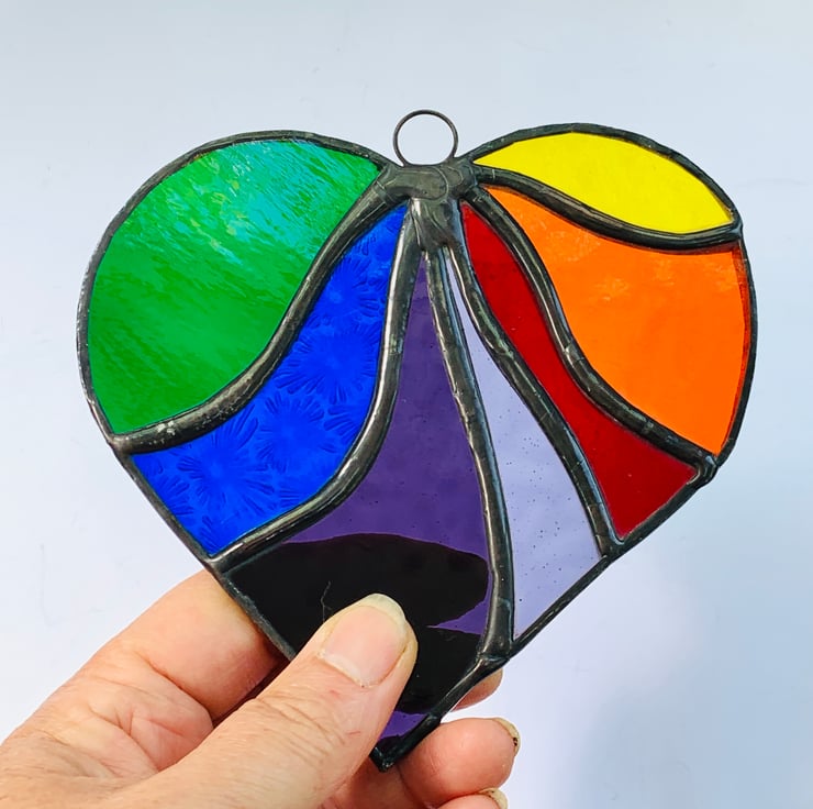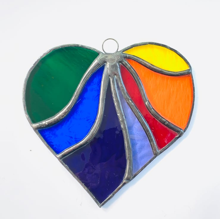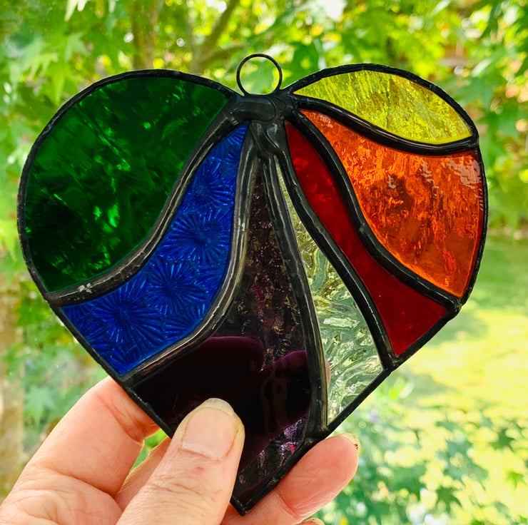 This beautiful heart is made from vibrantly coloured stained in all the colours of the rainbow.