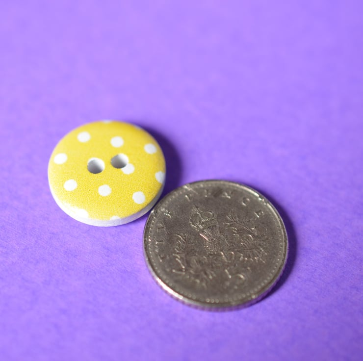 15mm Wooden Spotty Buttons Yellow White 10pk Spot Dot (SSP23)