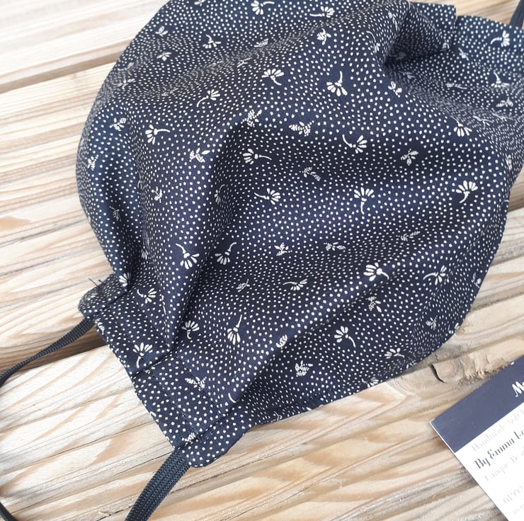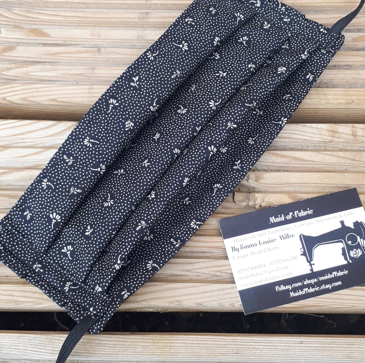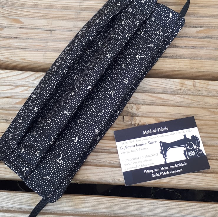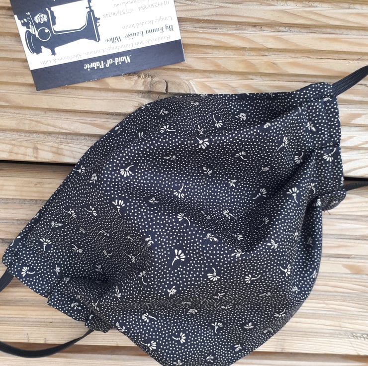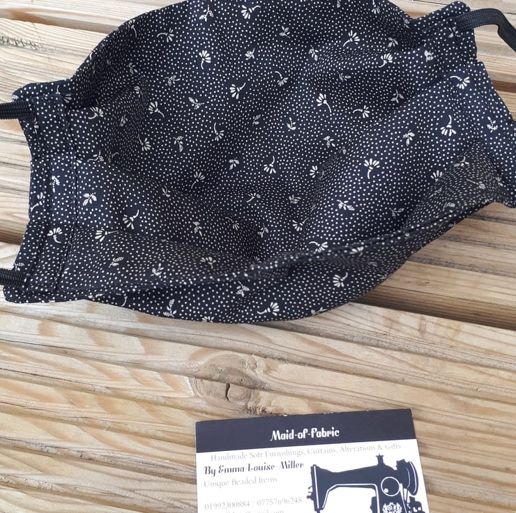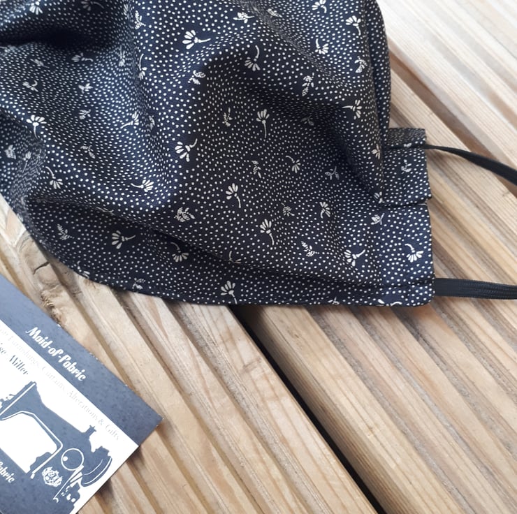 Face mask made using black flower dot cotton fabric and black elastic.
