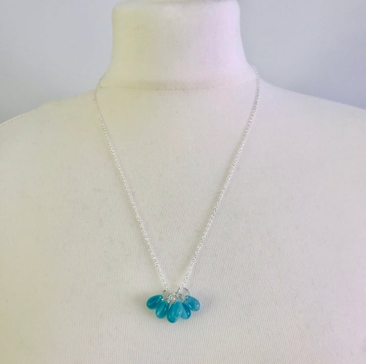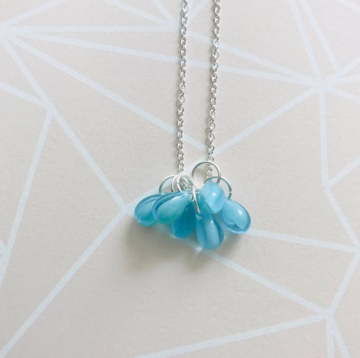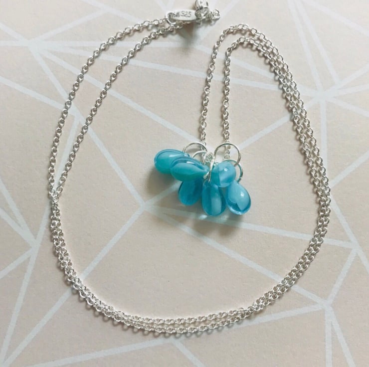 Opaque & translucent aqua, Czech Glass seed beaded, cluster pendant necklace. Each bead measures approx 1cm. 20 inch chain with lobster clasp. Simple, delicate & perfect for those who like understated jewellery.