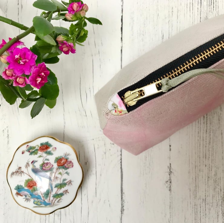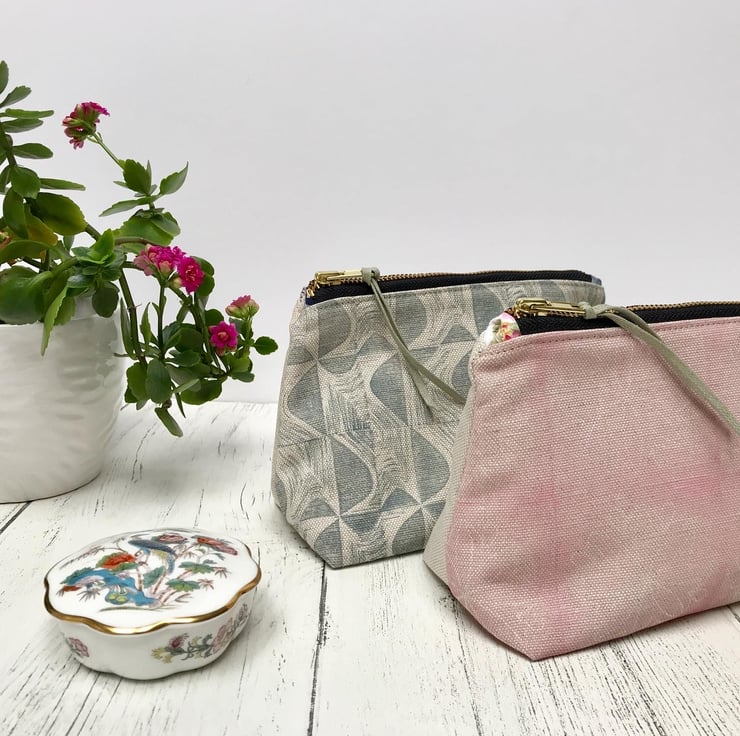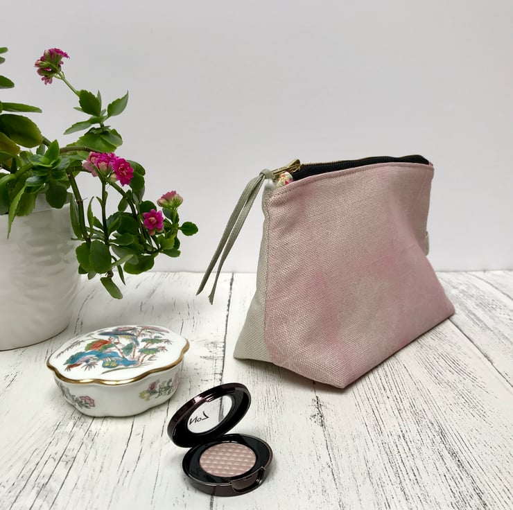 A lovely hand printed Zipped Cosmetic Bag. This would make an ideal gift or a treat for yourself and is perfect for carrying cosmetics or jewellery