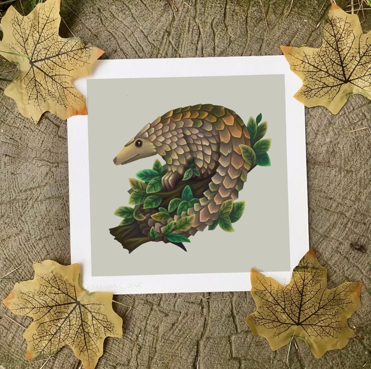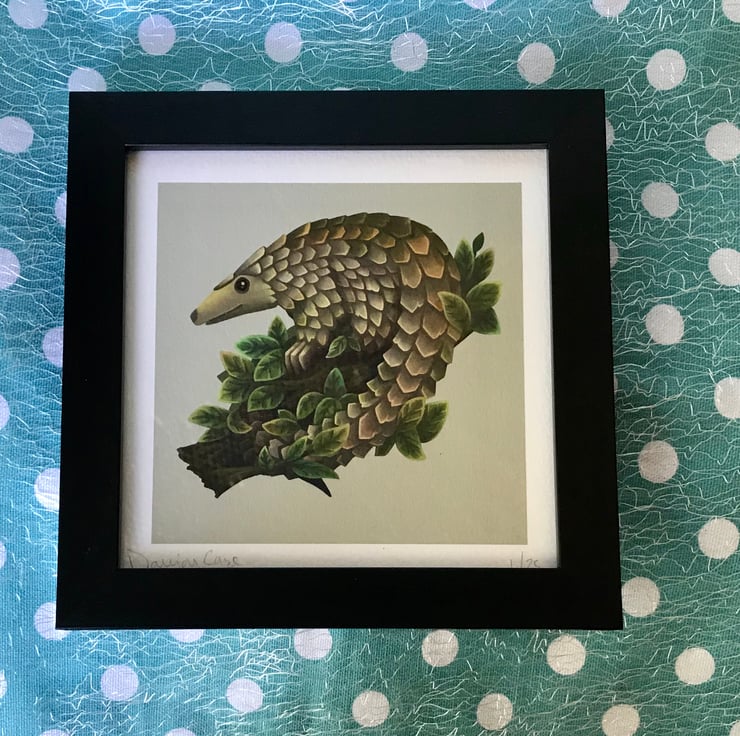 Be one of a select few to own one of these Pangolin limited edition art prints. Printed on 6" by 6" German etching paper with a 1” white border. Printed to order so can take up to 14 days to arrive. Print is numbered and signed by DuffleCat Prints artist Damian Case. Print is unframed.