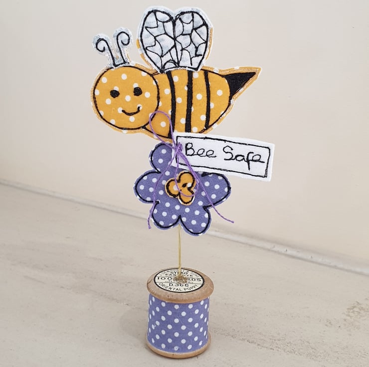 This cheerful little fabric and felt bee is buzzing along bringing a sweet little message.