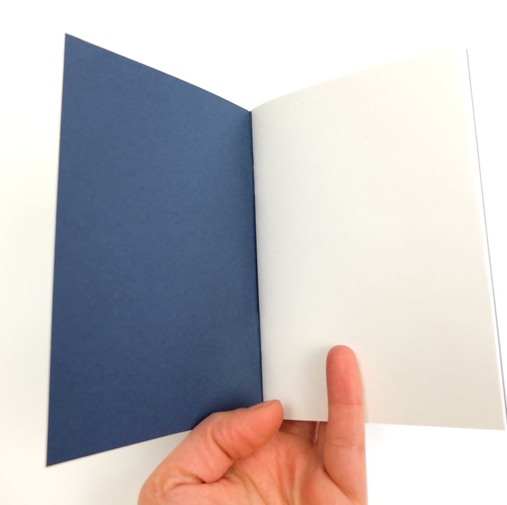 The notebook is A6 (14.9cm x 10.6cm), so a perfect size to pop in your bag and take with you for writing and sketching. Staple bound with 40 pages.