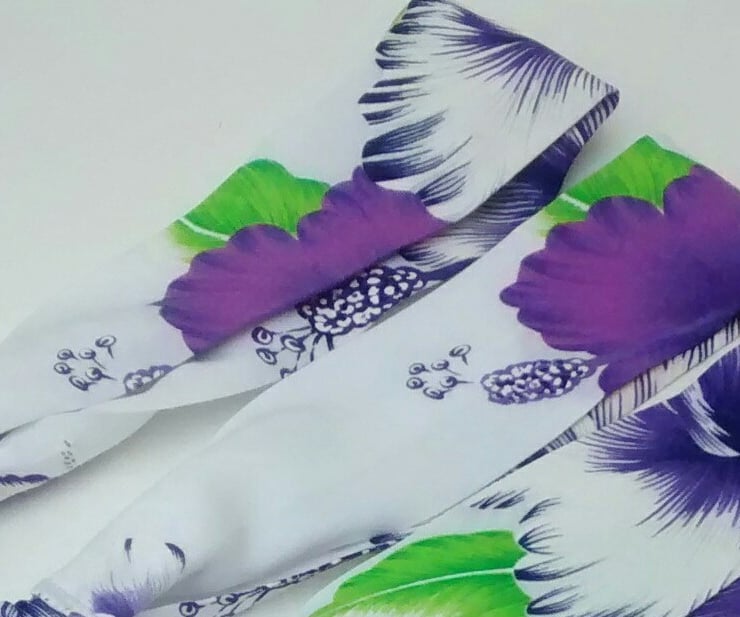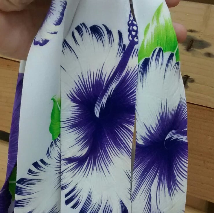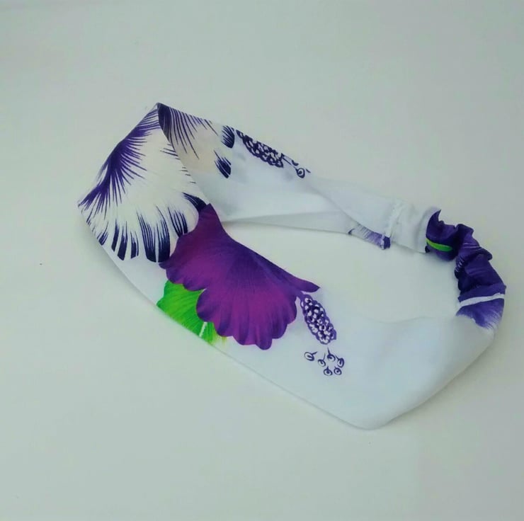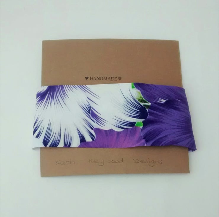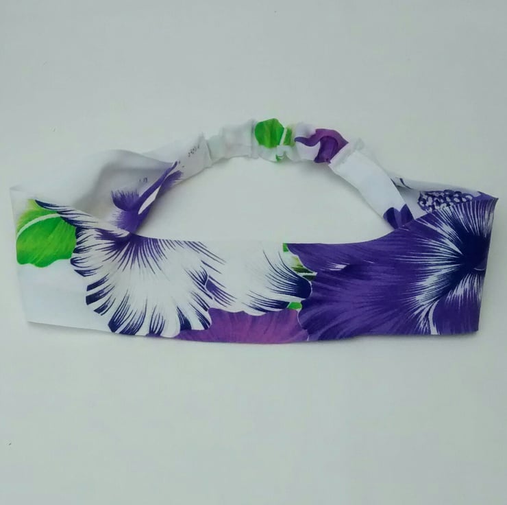 Handmade from a repurposed soft viscose fabric skirt with a tropical flower design. This hairband is elasticated at the back to fit comfortably.
