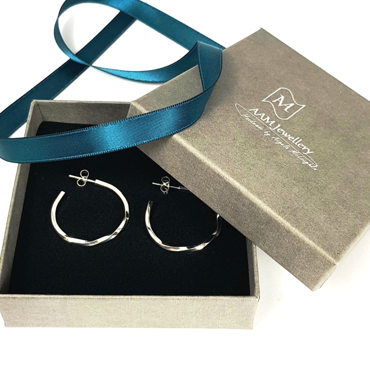 These sterling silver earrings are my alternative take on the classic hoop earring…they have a twist which gives them a little extra sparkle when it catches the light! They are a great everyday earring but can also glam it up for a night out!