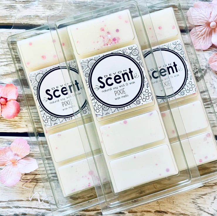 Our highly fragranced Pixie Snap Bar Melts have a floral accord of lemon, white flowers, orange blossom, neroli, rose, tuberose, jasmin, violet and lily of the valley on a sweet and sticky base of vanilla and musk. It has a similar scent to Fairy Dust by Paris Hilton.