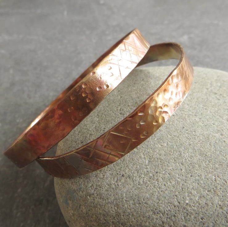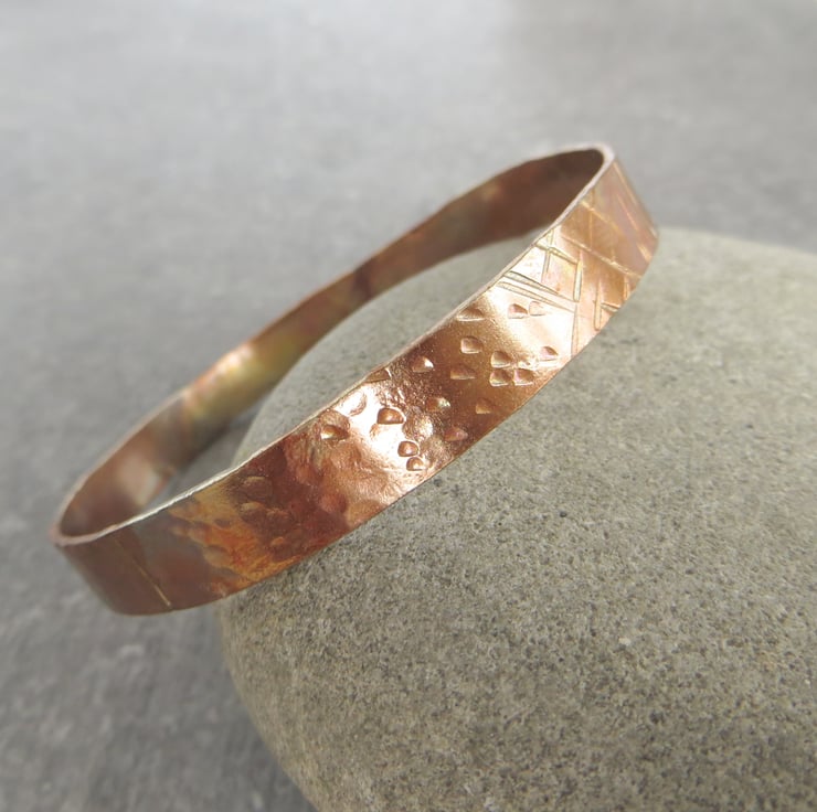 This wide copper bangle is full of rustic detail and would make a great 7th anniversary gift.