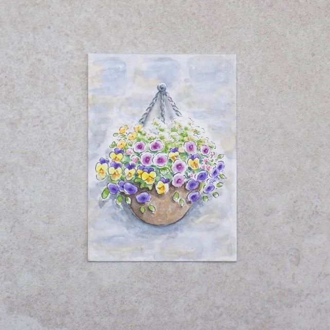 My original ACEO 'Flower Basket' has been painted with watercolour's on 300gm quality watercolour paper. It has been signed on the reverse and comes complete with a signed certificate of authentication and protected in a clear cellophane sleeve. ACEO’s (Art Cards Editions and Originals), are highly collectable and can be mounted, framed, kept in an album or displayed on a miniature easel.
