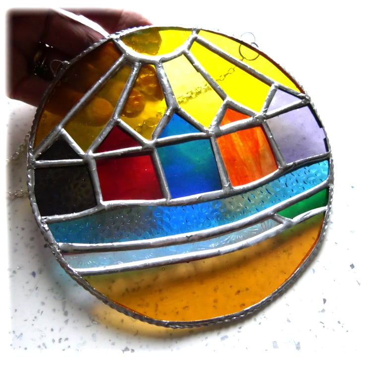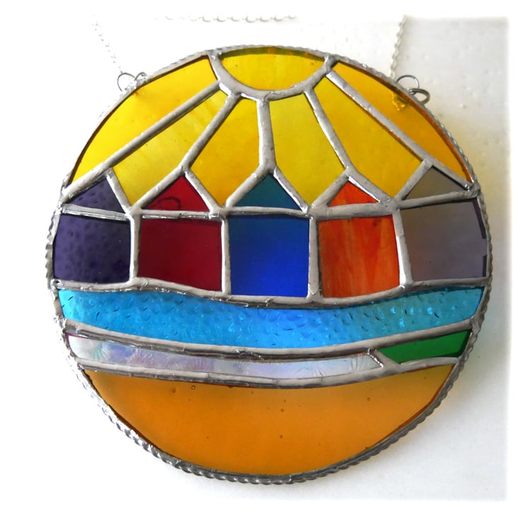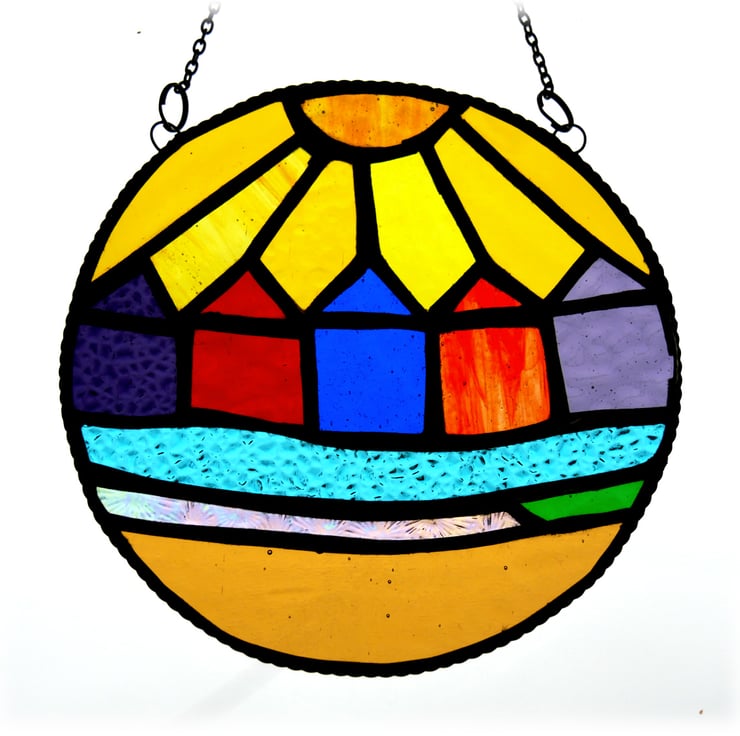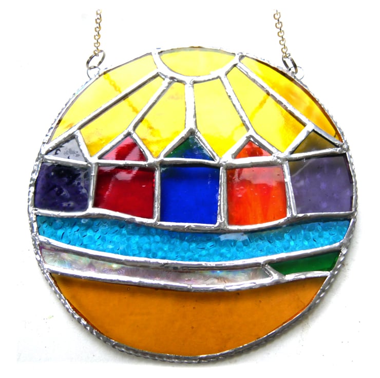 Beach Hut Ring Stained Glass Handmade Sunshine 011