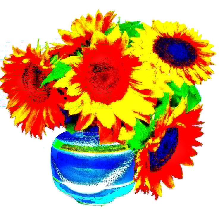 These beautiful Sunflowers in a vase are very vibrant; almost touching you with their colours.