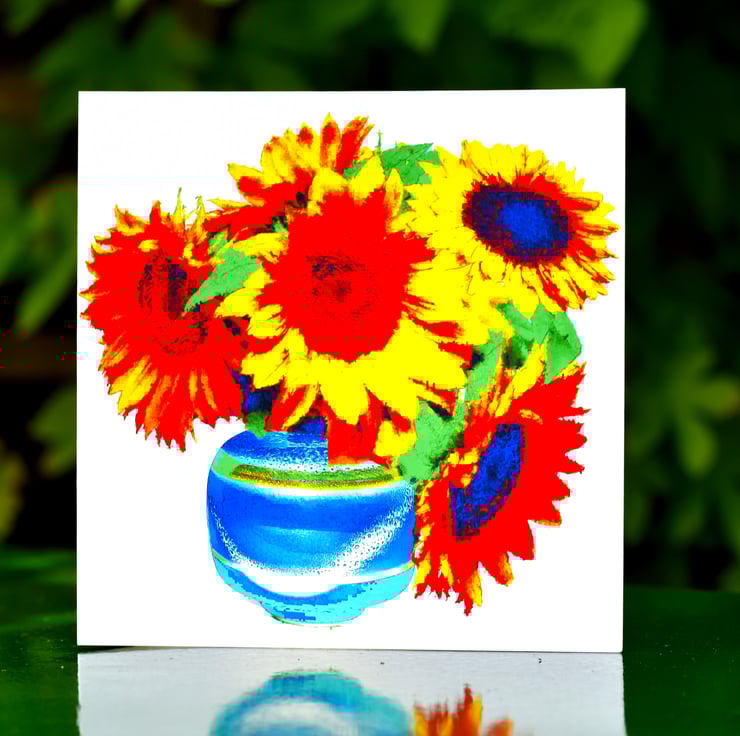 MeasurIng 6" x 6" (15.24cm x 15.24cm), your Sunflower card will be wrapped in a protective cellophane pouch, (biodegradable) and is left blank inside, enabling you to write your own personal message. This means you can send it for any occasion!!!