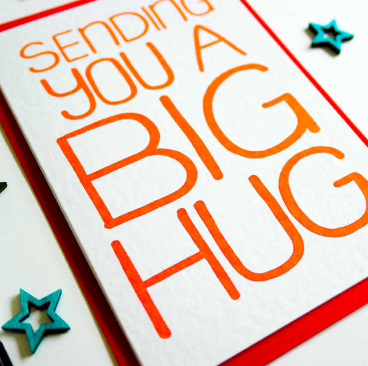 A perfect card to send to someone to say how much you miss their hugs, or maybe they're missing your hugs. Can also be great as a birthday, congratulations or just because someone is missing you from afar.