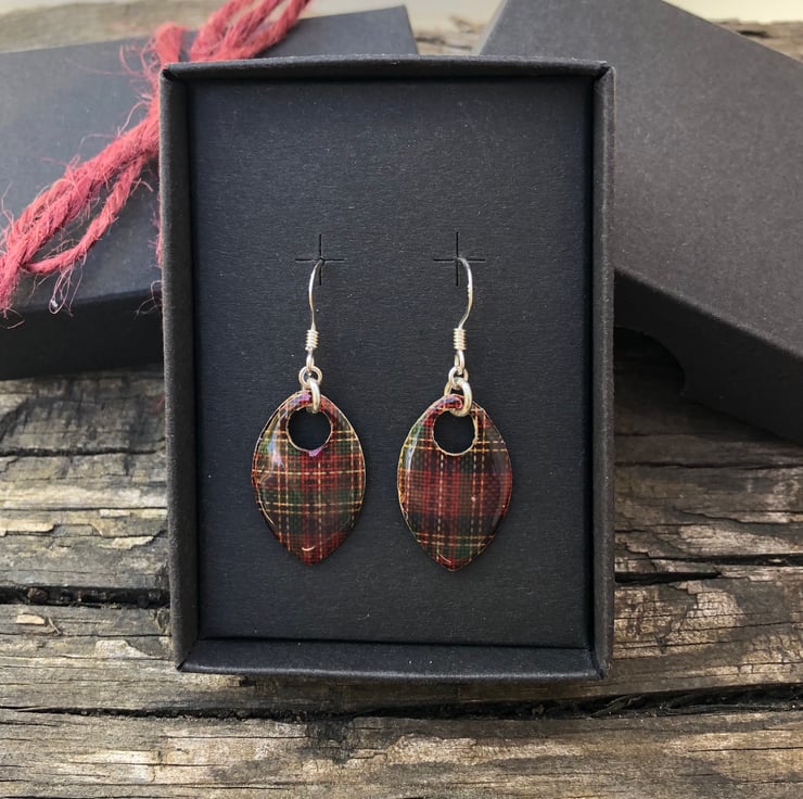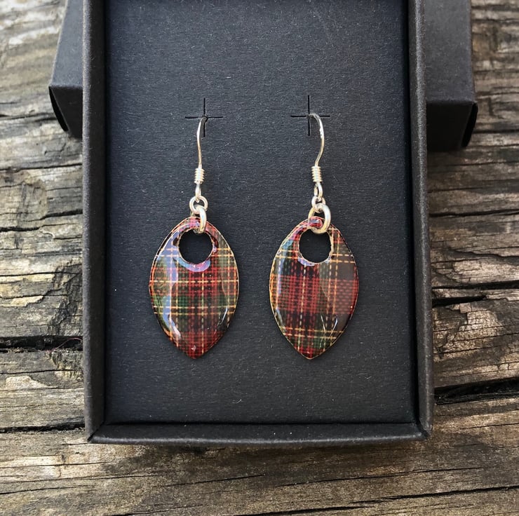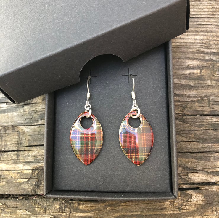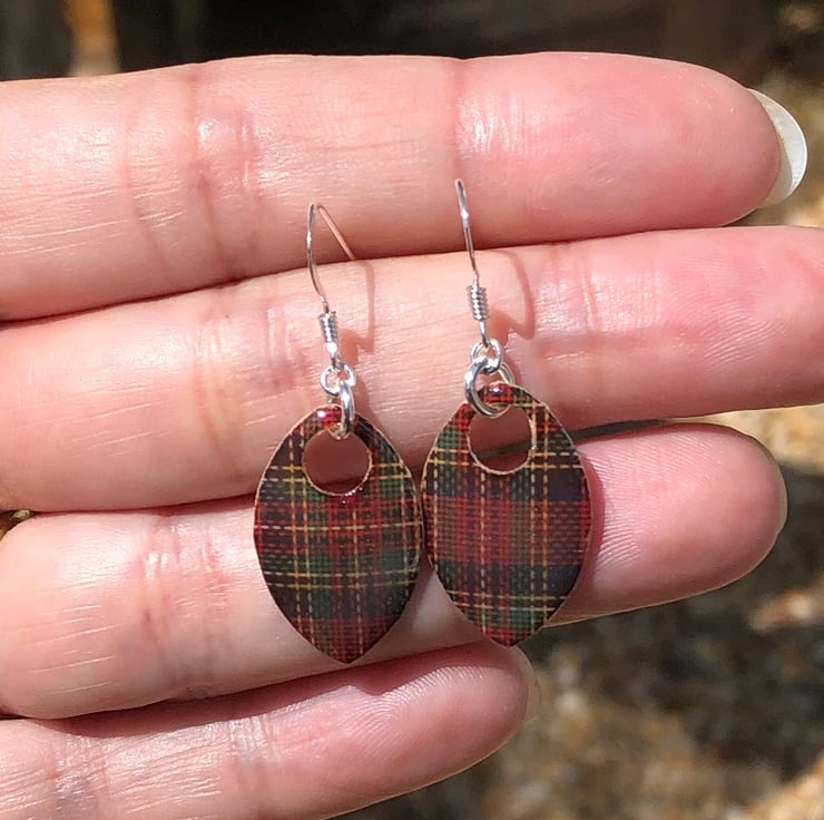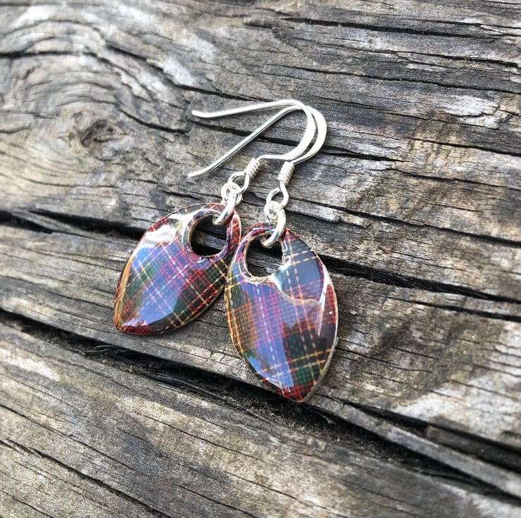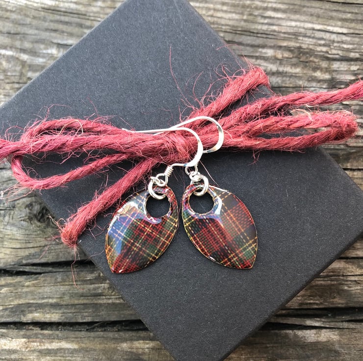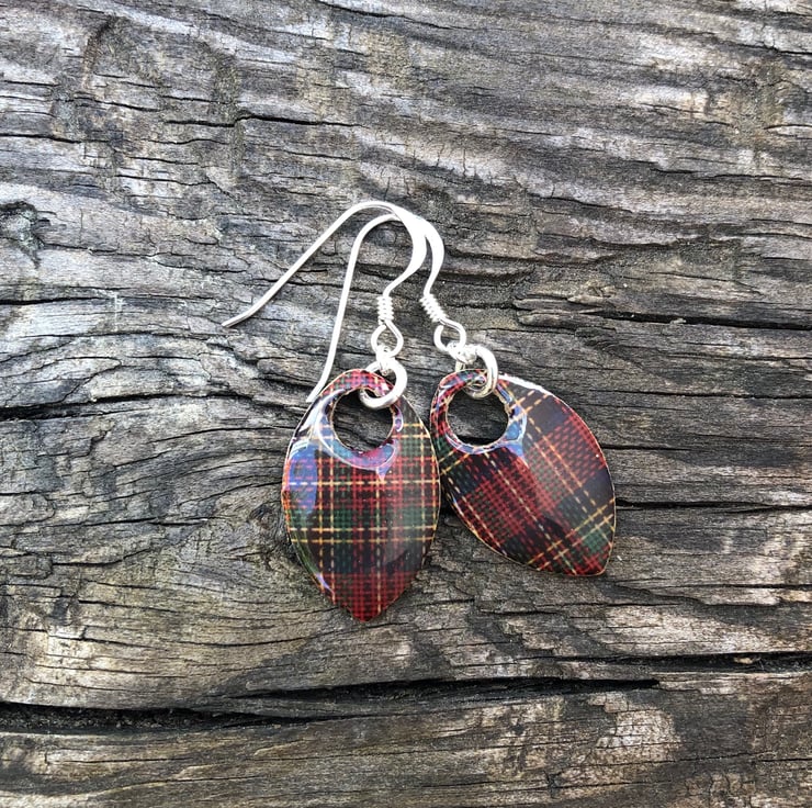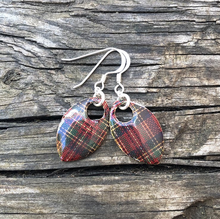 Super light weight aluminium scales have been hand decoupaged it pretty Decopatch paper and then covered with a number of layers of cold enamel. These hang from sterling silver fish hook earrings using sterling silver jump rings. The back of the scale remains blank, silver in colour.