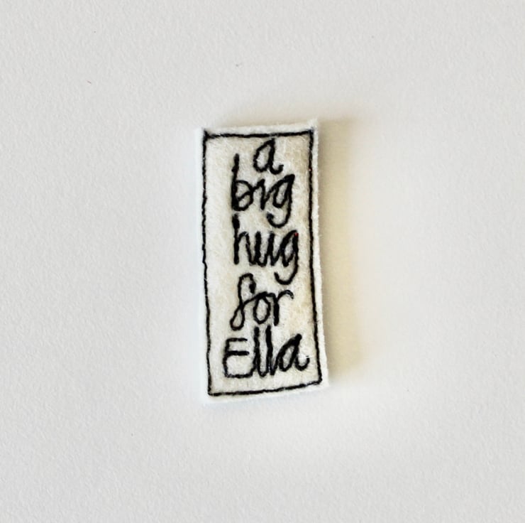 This bear can be personalised with a sewn label reading 'a big hug for ....' with your chosen name sewn after 'for', please see photograph number six. When ordering, please enter your chosen name in the comments section.