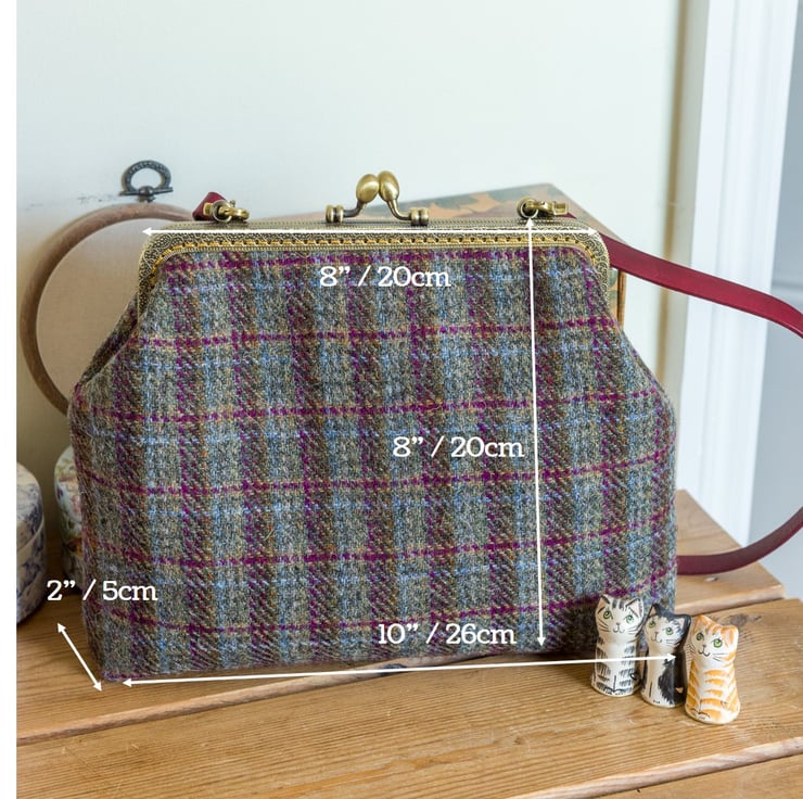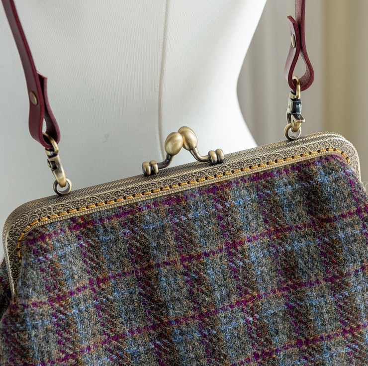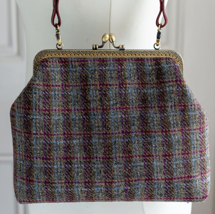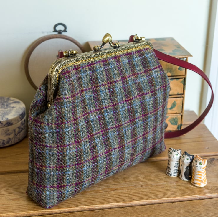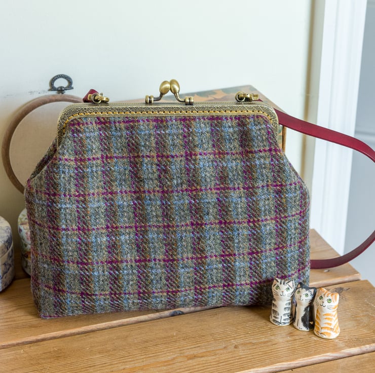 Although I make lots of purses, clutches and wristlets, I don't often make larger handbags and when I do, they tend to be as a result of a special commission. Occassionally though, I find just the right fabrics to tempt me to make one and this lovely richly coloured, check Herringbone Harris Tweed was one of those fabrics!