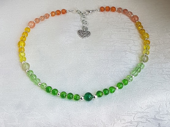 Gorgeous Citrus Crush Necklace. Absolutely stunning glass bead necklace, beautiful citrus tones of Greens, Yellows and Oranges. A great piece of brightly coloured jewellery for the Summer or to add a tropical Citrus splash of colour to any season.