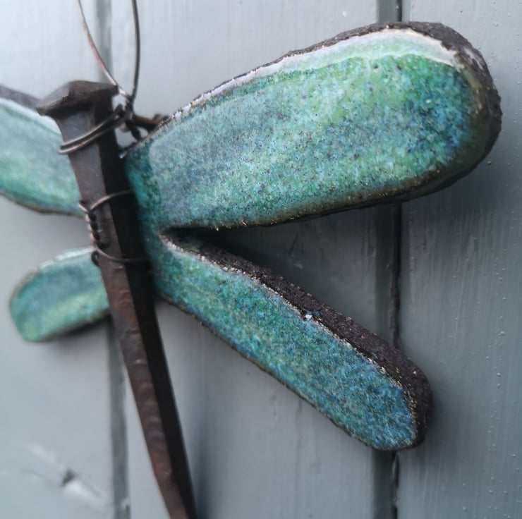 Ceramic Dragonfly, created with an upcycled rusty nail !