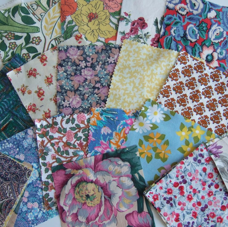 Back in the day when Vintage Fairs were still allowed! I always had a collection of old fabric patchwork squares, buttons and trimmings as well as vintage clothes on my stall. I loved it that a customer could dip in and buy tiny pieces from me to maybe just line a purse say, or finish off a special little project. This pack is my way of recreating that feeling, until we can all go and visit outside events again.