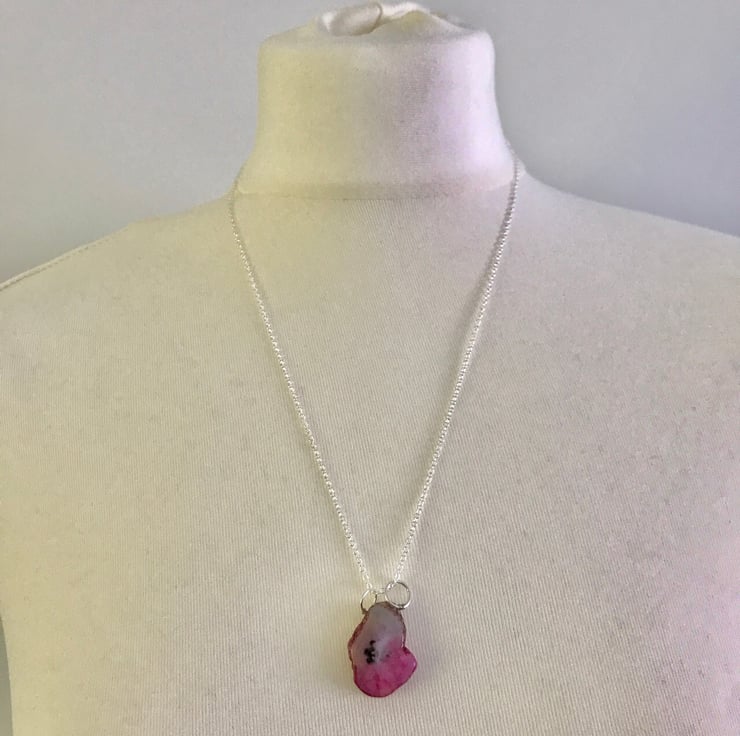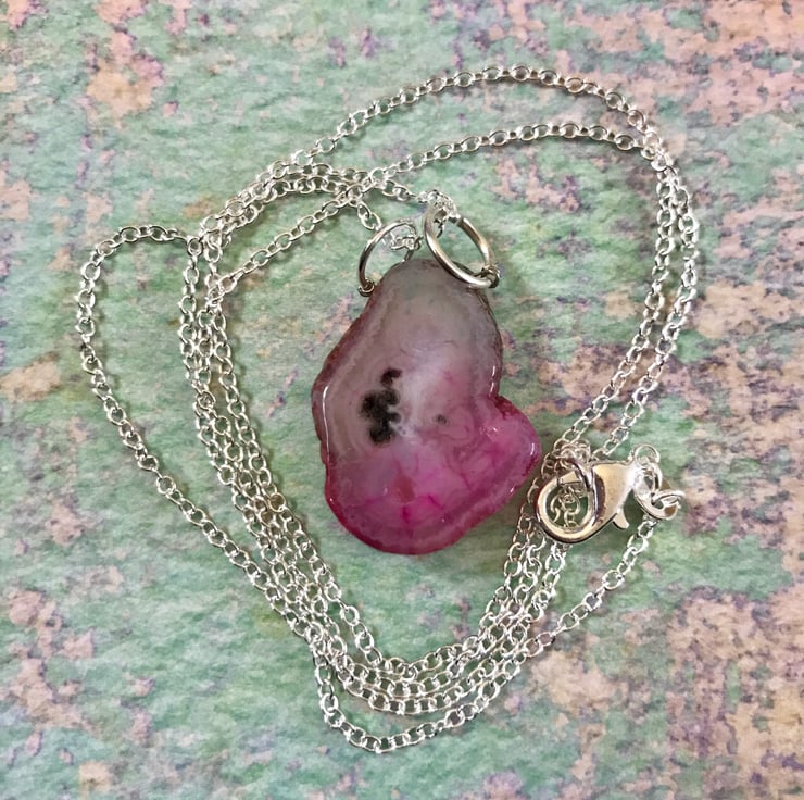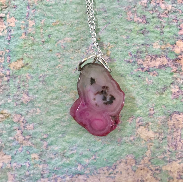 Watermelon, solar, quartz, mystic, druzy pendant necklace. Pendant measures approx 1.8cms x 2.5cms. Hangs on a 22 inch chain with lobster clasp.