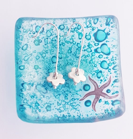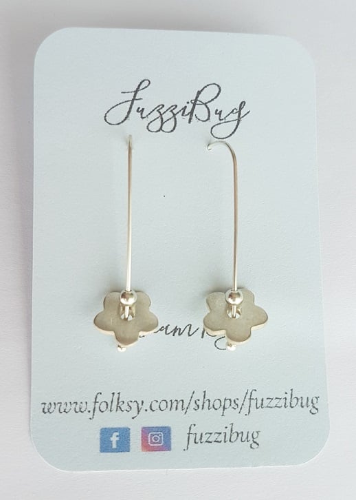 Sterling Silver Bar Earrings with Fine Silver Flower