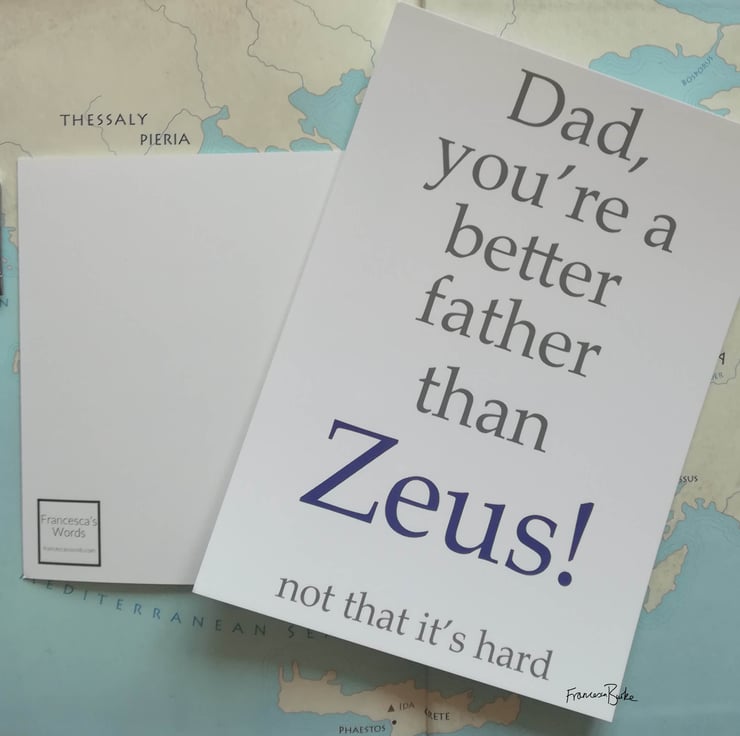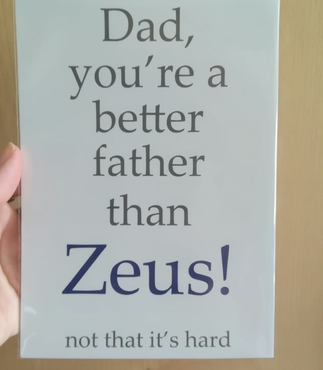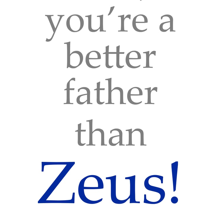 Print reads 'You're a better dad than Zeus! Not that it's hard.'