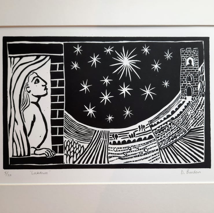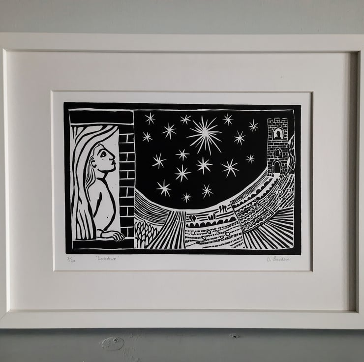 A black and white limited edition linocut printed in my home studio in Wensleydale, North Yorkshire.