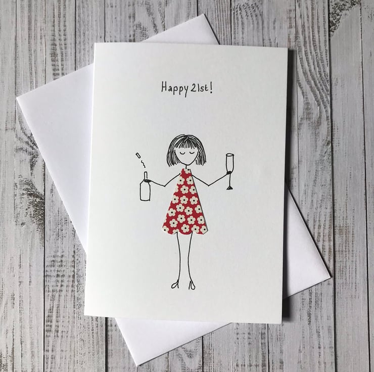 Each of my cards are hand drawn by me and not printed (apart from the pretty paper used for the dresses). If you would like to add a name to the front ie 'Happy 21st Sue' then please message me once you have placed your order.