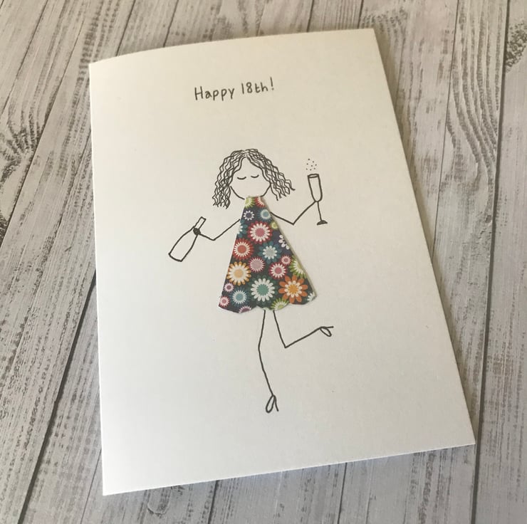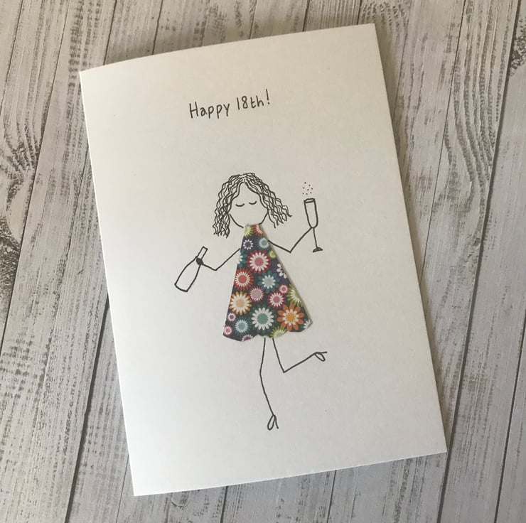 Each of my cards are hand drawn by me and not printed (apart from the pretty paper used for the dresses). If you would like to add a name to the front ie 'Happy 18th Sam' then please message me once you have placed your order.
