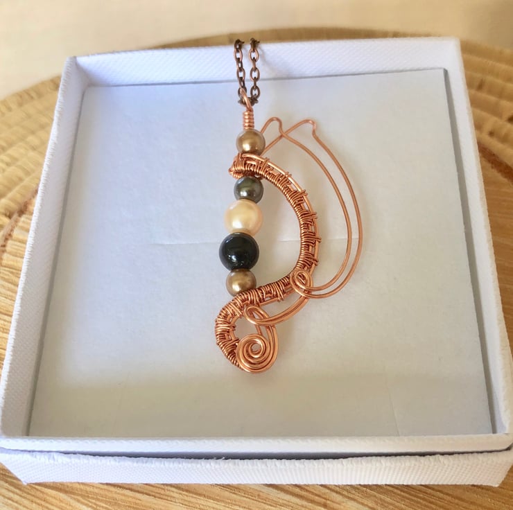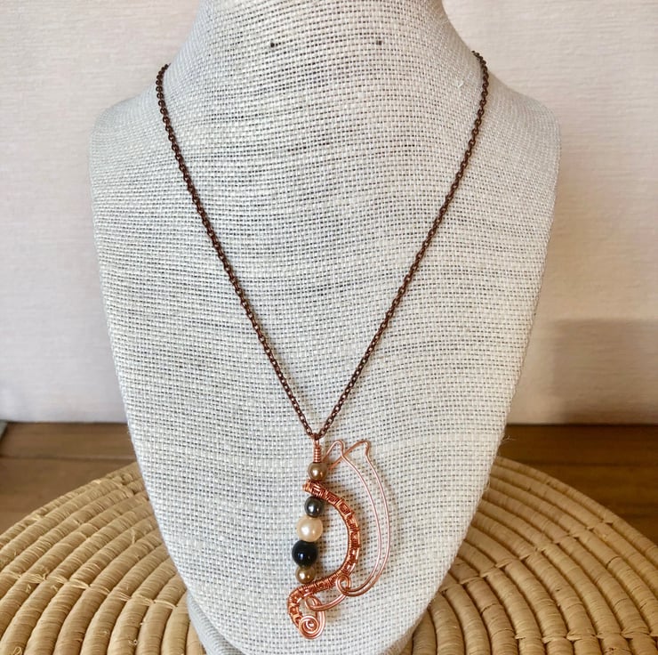 A unique, hand crafted, wire pendant made with pure copper, tarnish resistant wire, keeping your jewellery in its beautiful copper colour for longer.