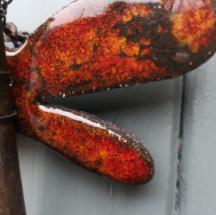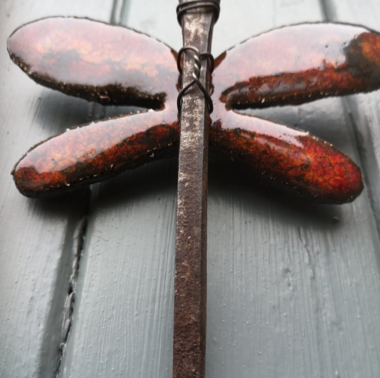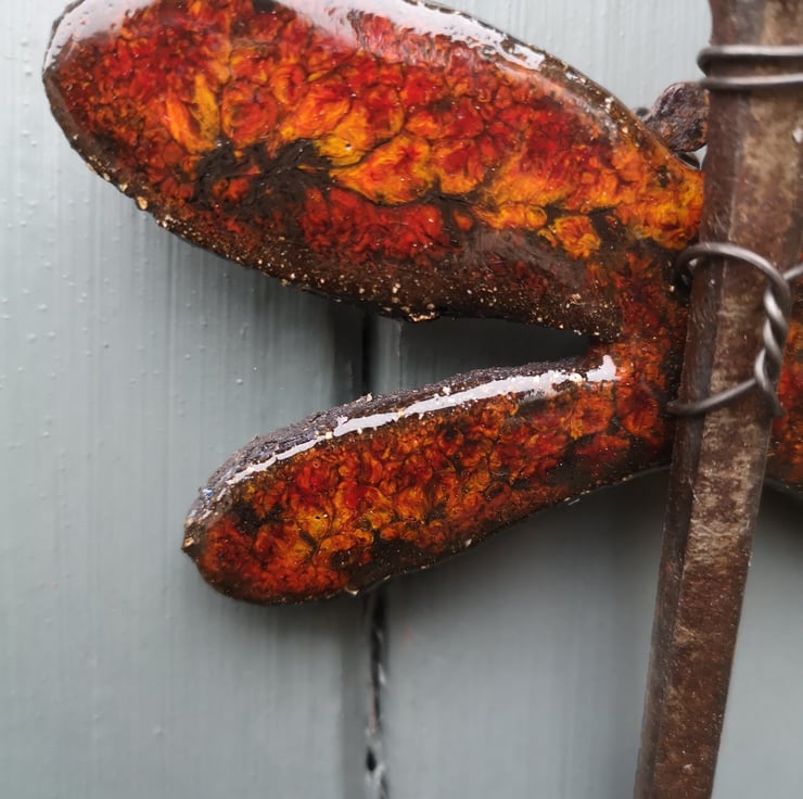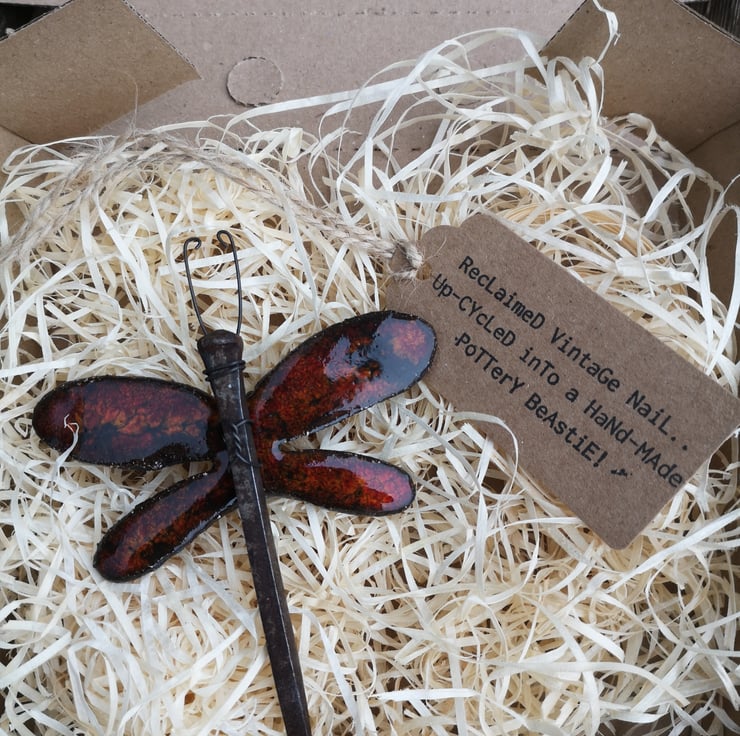 Ceramic Dragonfly, created with an upcycled rusty nail !