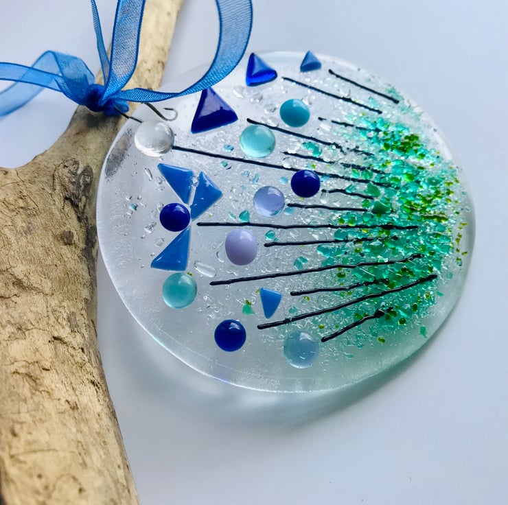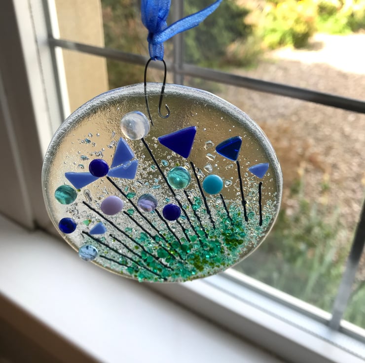 This sun-catcher is inspired by wild flowers and is handmade by me in my Yorkshire studio. It is very pretty especially when the glass glints in the sun.
