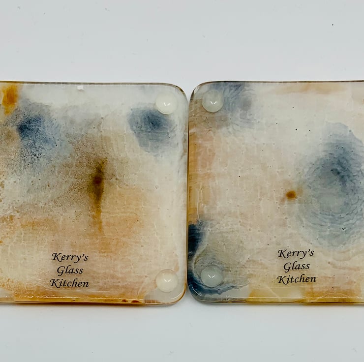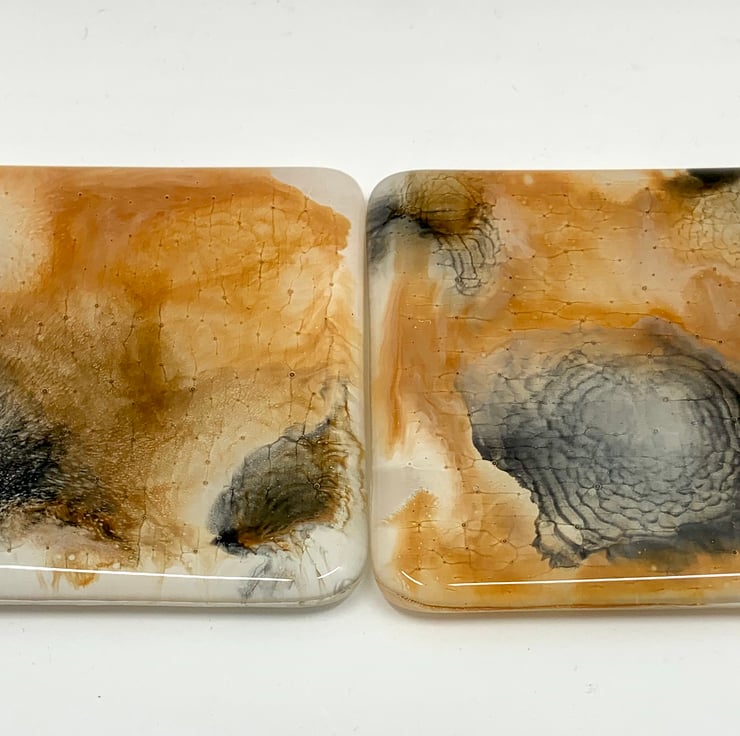 Two Fabulous Fused Glass Coasters painted with enamel paints and then capped with clear glass and fused in my home kiln.