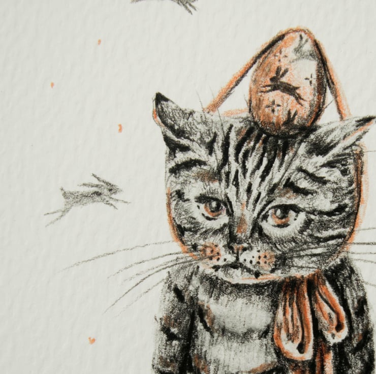Simon the cat is my own pencil illustration, now available as an archival art print. The print would be wonderful displayed all year round- who can't resit that little sulking face?
