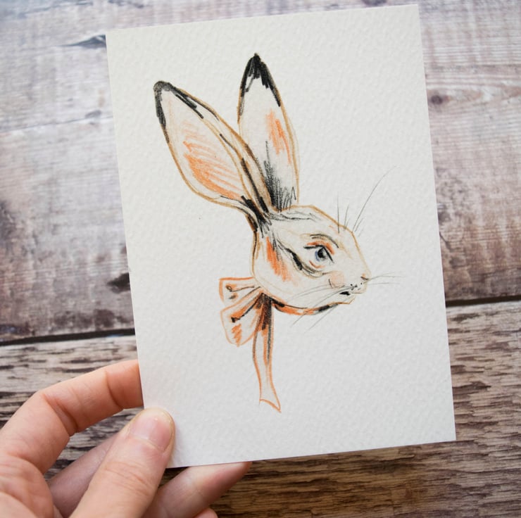 Bertie the bunny rabbit hare was originally created as a pencil drawing in my sketchbook. Wonderfully vintage in style and perfect for displaying in any room within the home.