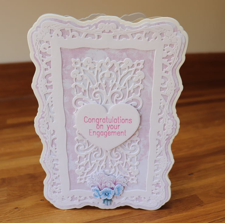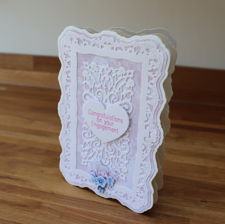 This beautiful card has a decorative frame and the heart has the sentiment.