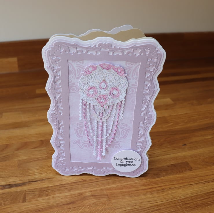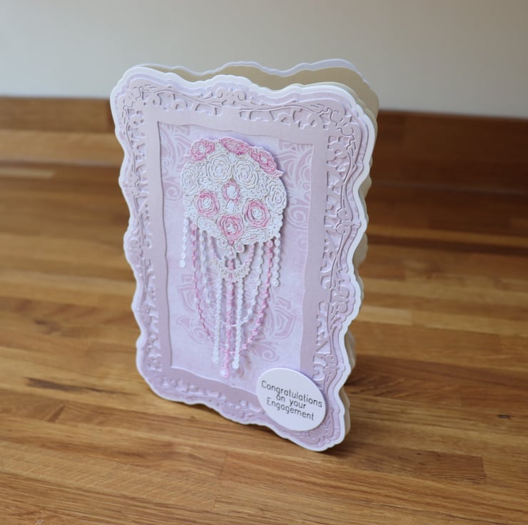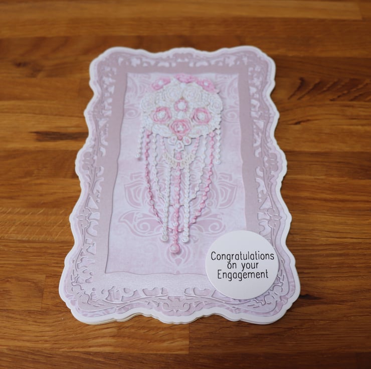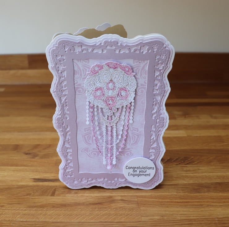 This beautiful card has a decorative frame and inside the frame is a beautiful Bouquet.