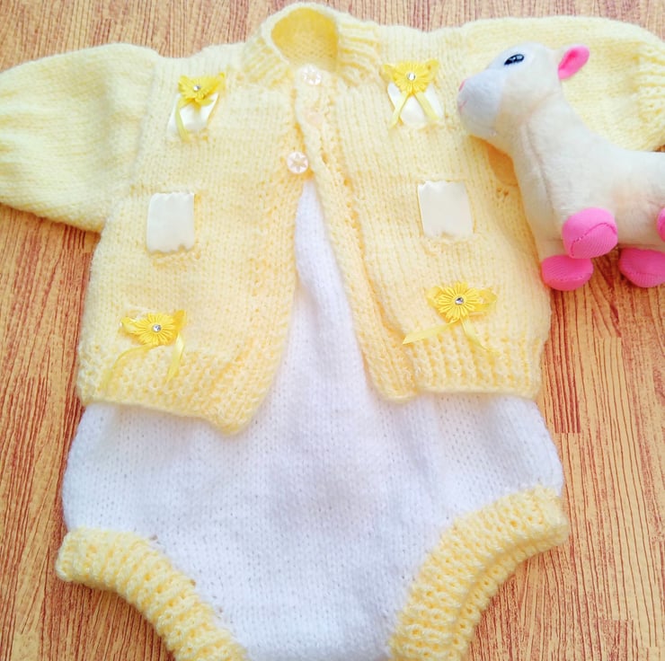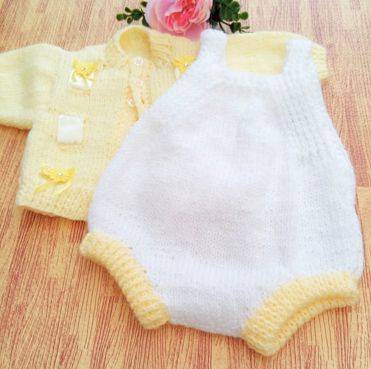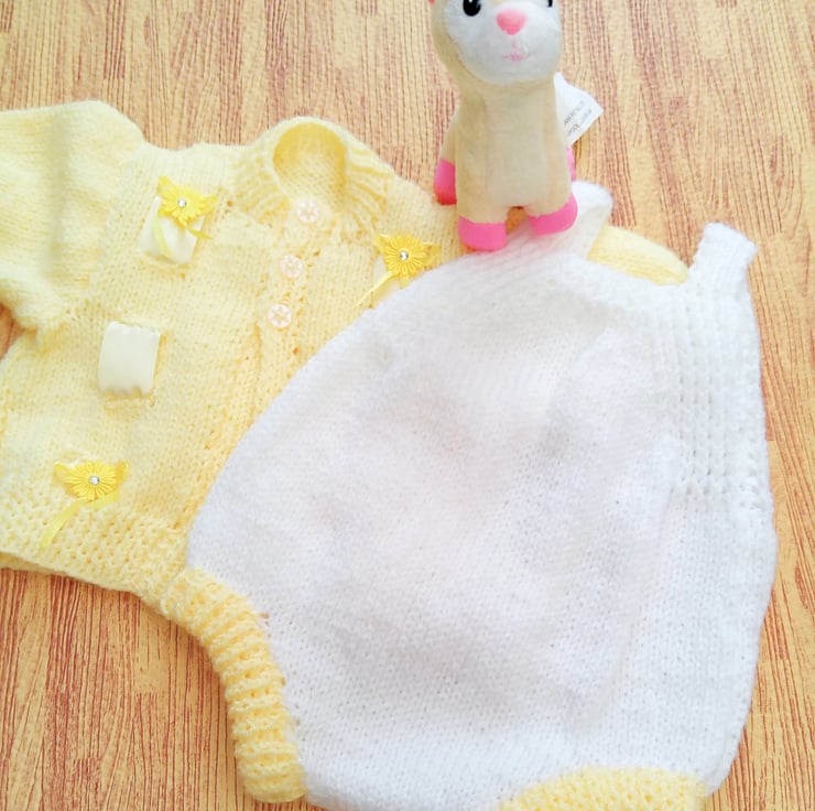 Knitted Romper and Cardigan Set, Hand Knitted Baby Outfit, Baby Clothes, Baby Shower Gift, New Baby Gift, Baby Clothes Set