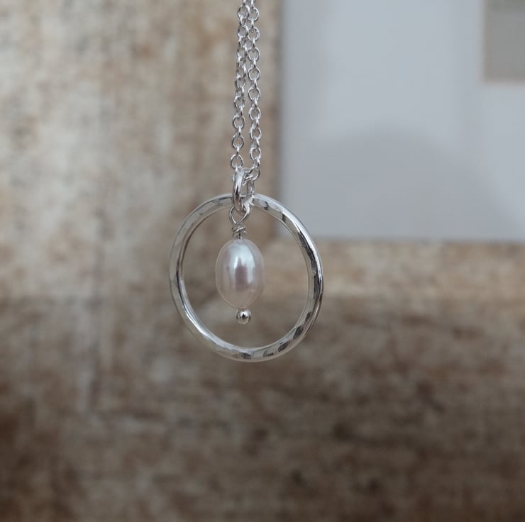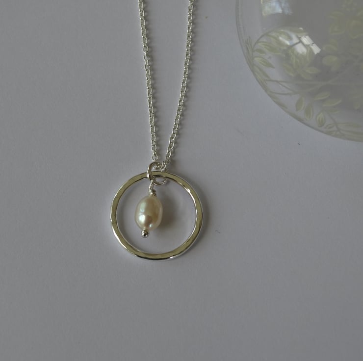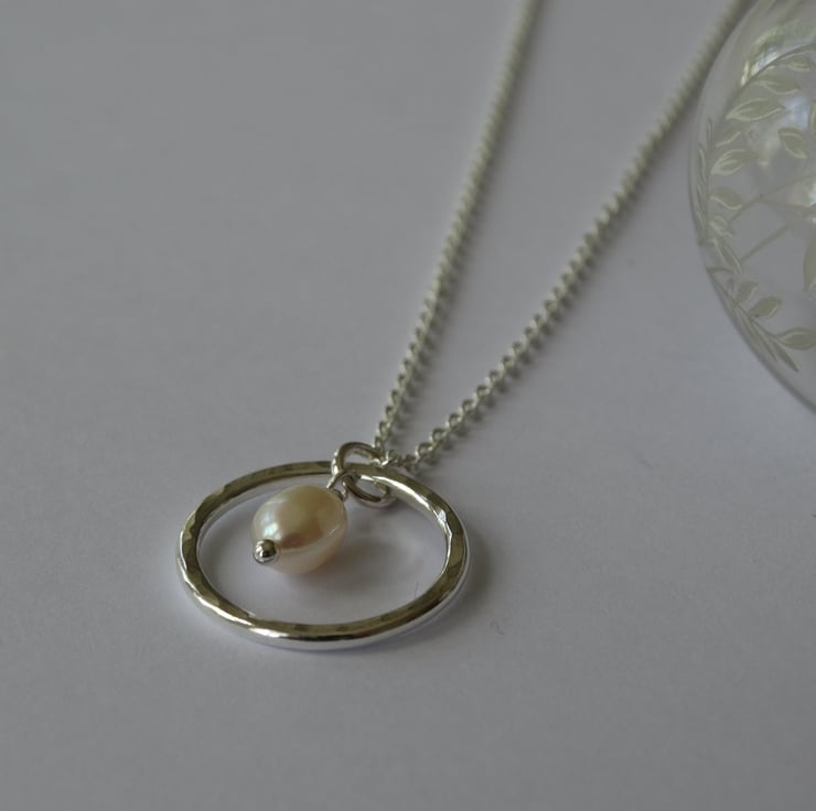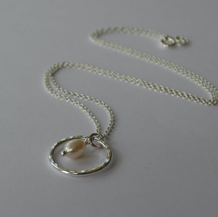 A pretty handmade sterling silver pendant featuring a beautiful little freshwater pearl.