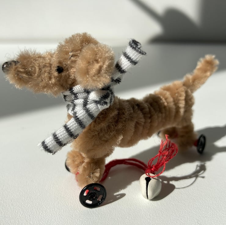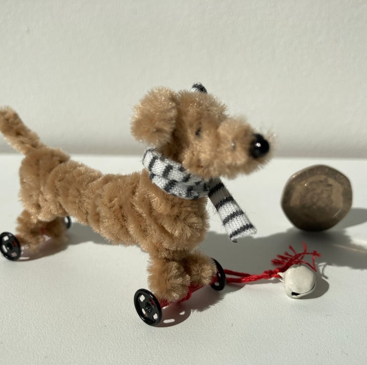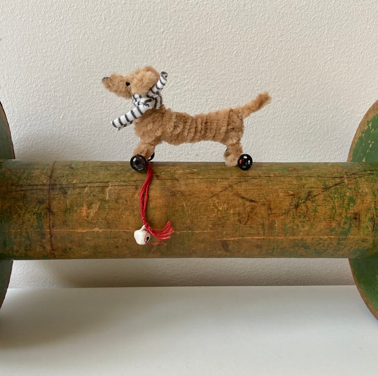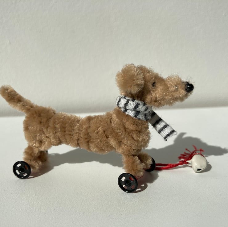OOAK sculptured miniature Daxi on wheels. All my animals are hand finished with eyes and noses and, if needed, wool whiskers!! The wheels are for decorative purposes only and do not turn. My animals are not toys but are designed as small pieces of art for display on a shelf somewhere where they will be admired and loved. Each little guy or gal will come boxed and with a little story about their past exploits!