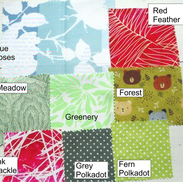 As I'm limited to 20 variations on listings, I can't include all the fabric options I have photographed. If your preference is NOT on the list, please select option OTHER and add your selection to the "Note to Seller" section when you place your order. All fabrics are available in all sizes.