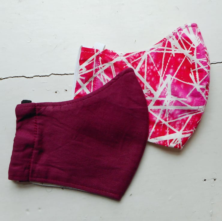 The elastic is threaded through stitched channels, so can be easily replaced. No throwing out the whole mask if the elastic is damaged, simply replace with new and you're good to go.
