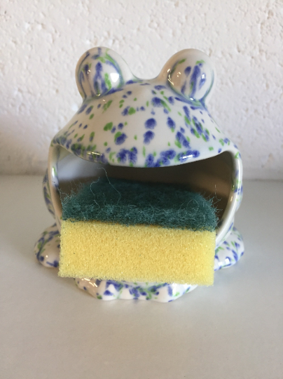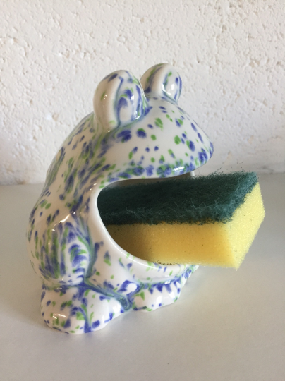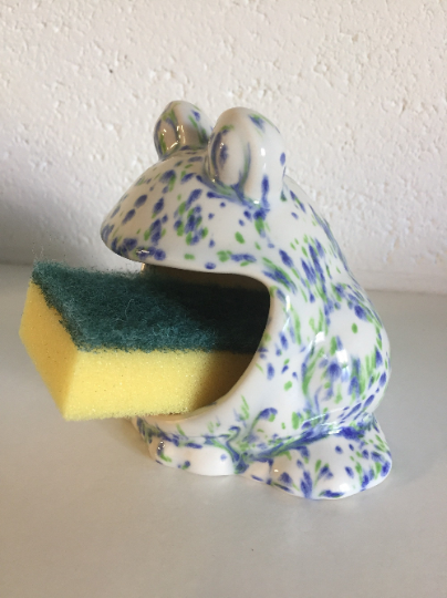 Here we have one of my ceramic frog sponge holder. This item can also be used to hold soap or various items.