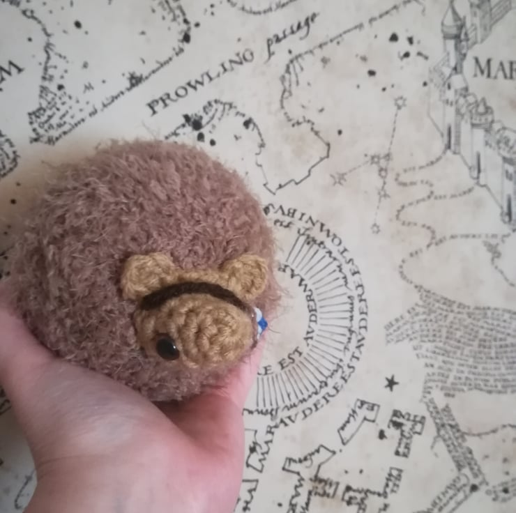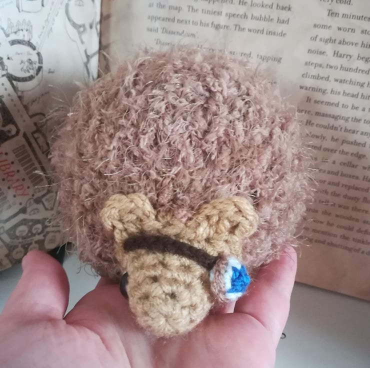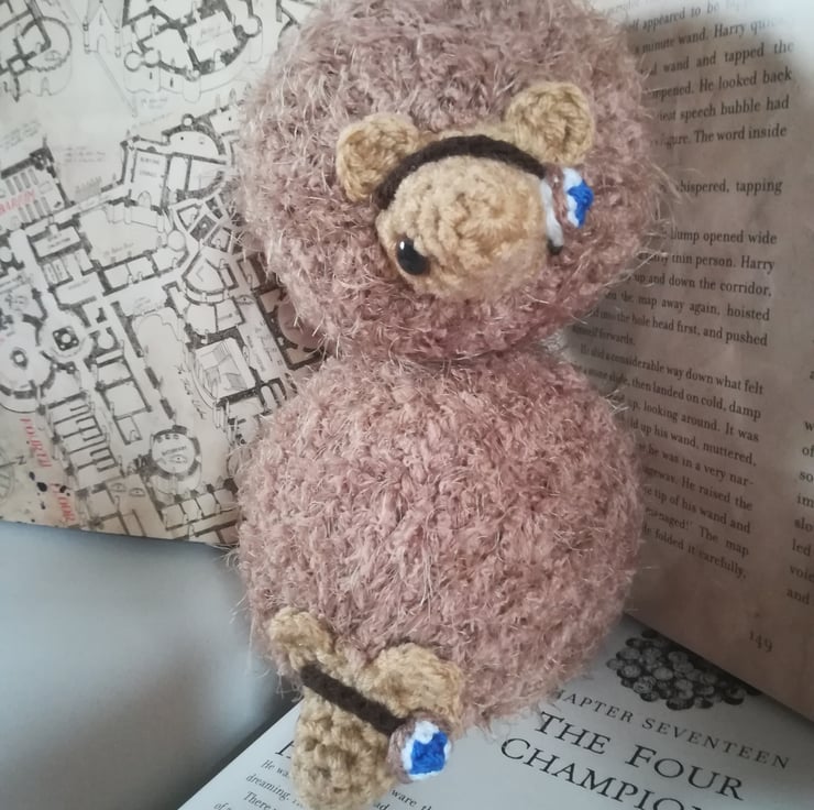 These limited edition Puffs are made using the softest fluffy brown yarn. He even has his eye strap.