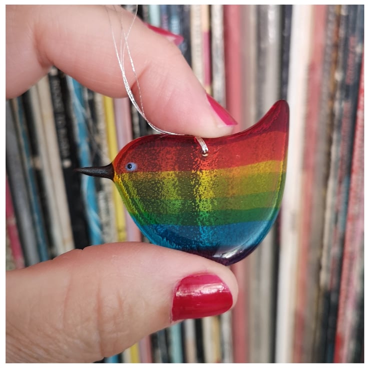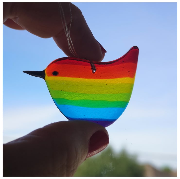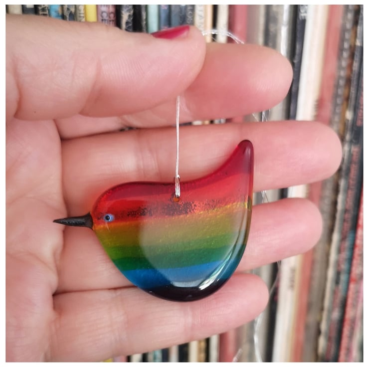 These little birds are a labour of love as I make the rainbow glass and then grind each one into shape using cold working tools and machinery, before a second and sometime third firing. See images.