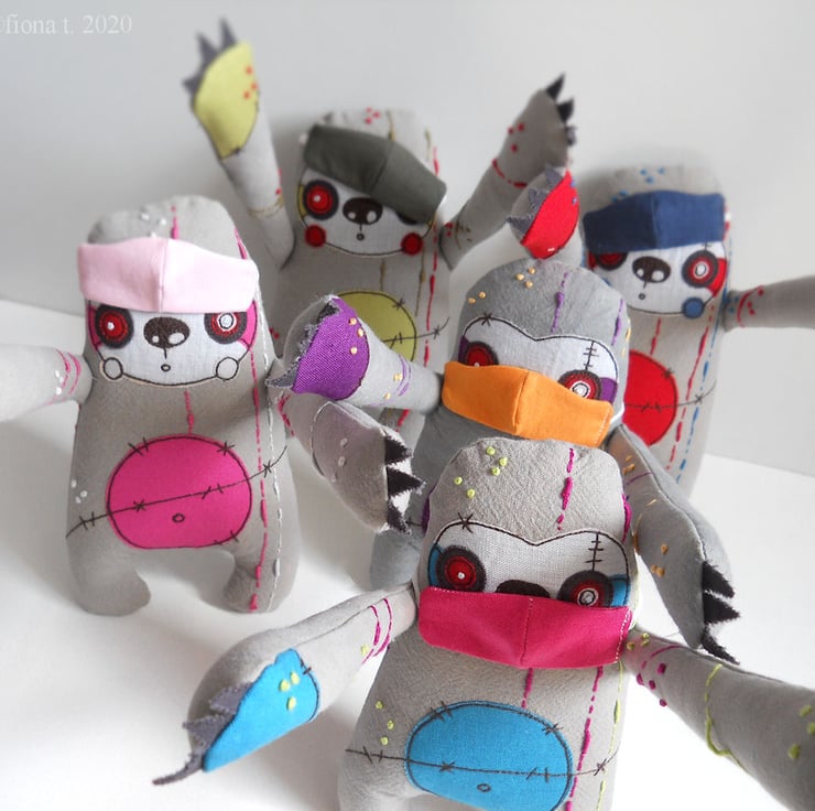 due to very nature of handmade, hand dyed & free hand embroidery, each zombie will vary eeever so slightly.