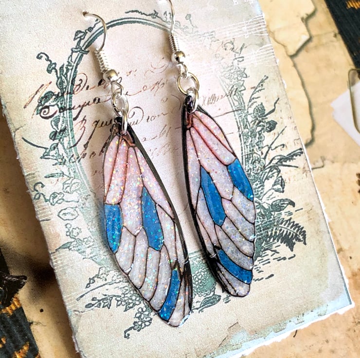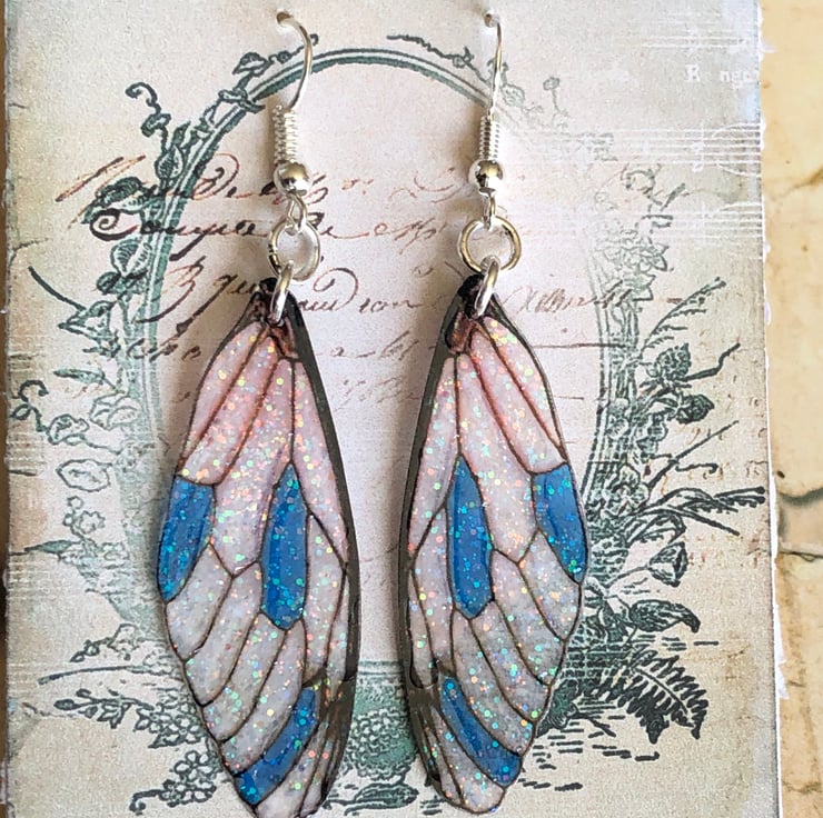 The fairy wings are transparent white with lovely patches of blue and give off such a pretty sparkle due to the tiny iridescent glitter that is sealed beneath a wonderful glaze.