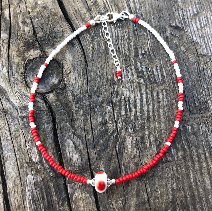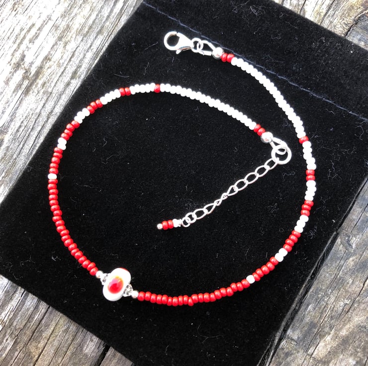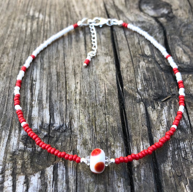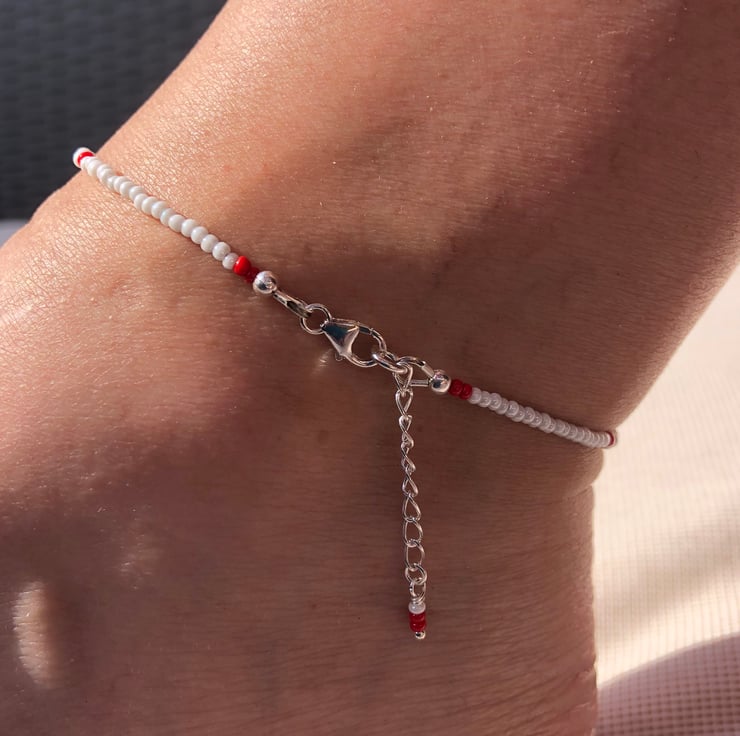 Go on, brighten up that ankle with this unique red and white beaded anklet.
